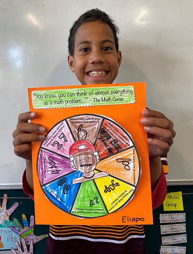 For Pāngarau this term, Rūma Whitu have been learning about fractions! We read a book called "Math Curse" which taught us that maths is all around us. We made some curse wheels to show some of the maths that we see everyday at home and in our kura.