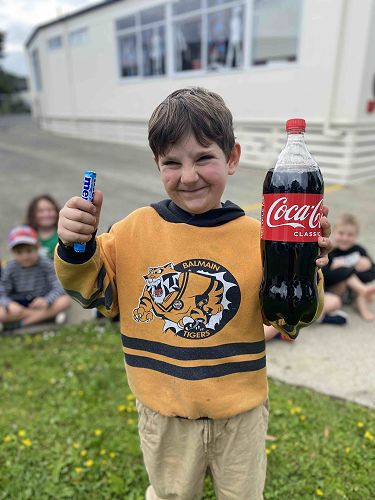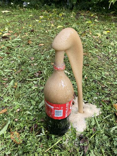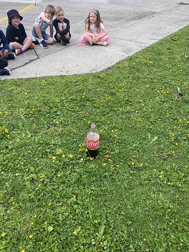 Today we put mentos in a coke bottle because we wanted the mentos to explode and go everywhere. I thought it would explode into my mouth. It looked brown and foamy.