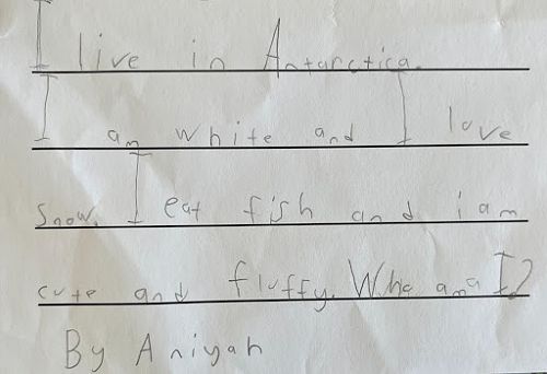 Room 9b News Sarah — March 7th, 2022 Last week in Rūma Iwa we celebrated Sea Week. Here are some photos of our penguin artwork and “What am I?” writing. Gallery