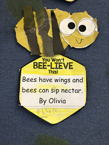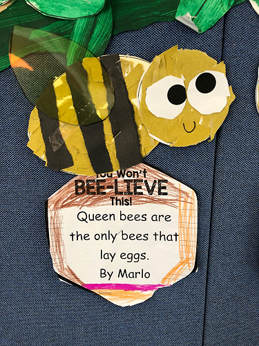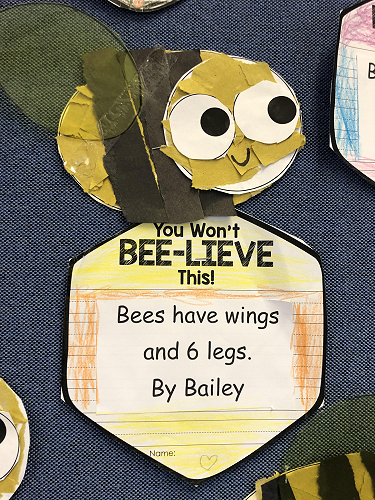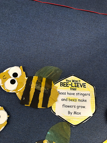 Room 15 have been learning about being Kaitiaki and looking after our environment. The children learned that without bees we wouldn’t have all the flowers, fruit and vegetables that we love. We did some research and found out lots of facts about bees. We then made our own awesome bees out of ripped paper. Do you know any facts about bees?