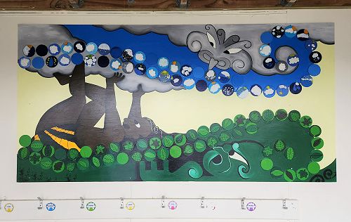 Annemarie is a local artist, teacher and mum who recently collaborated with the Year 2s to produce the mural of lTane, Rangi and Papa outside Room 23.