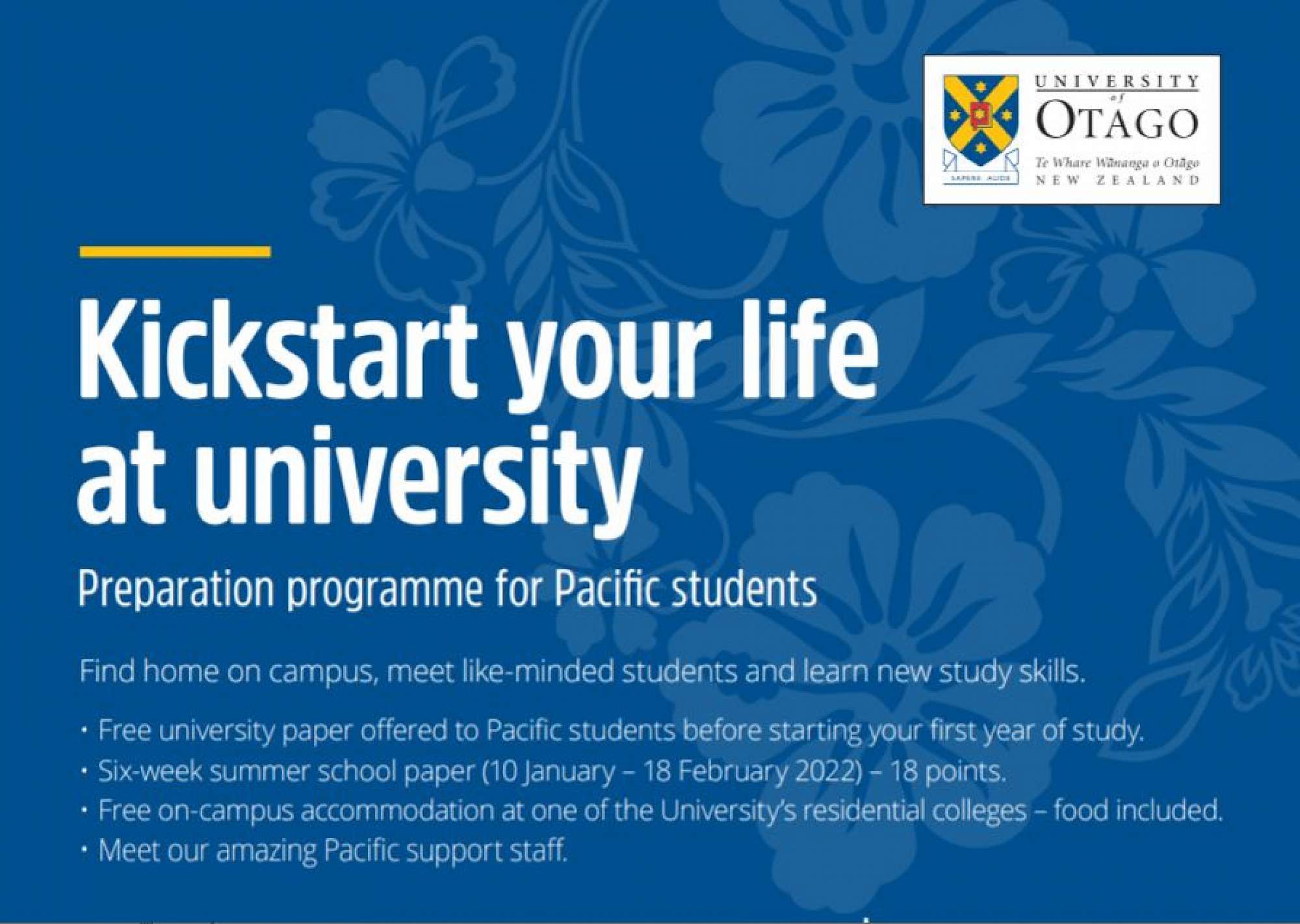 Students can register their interest for Kickstart 101 at: https://www.otago.ac.nz/pacific-at-otago/kickstart101/otago714043.html