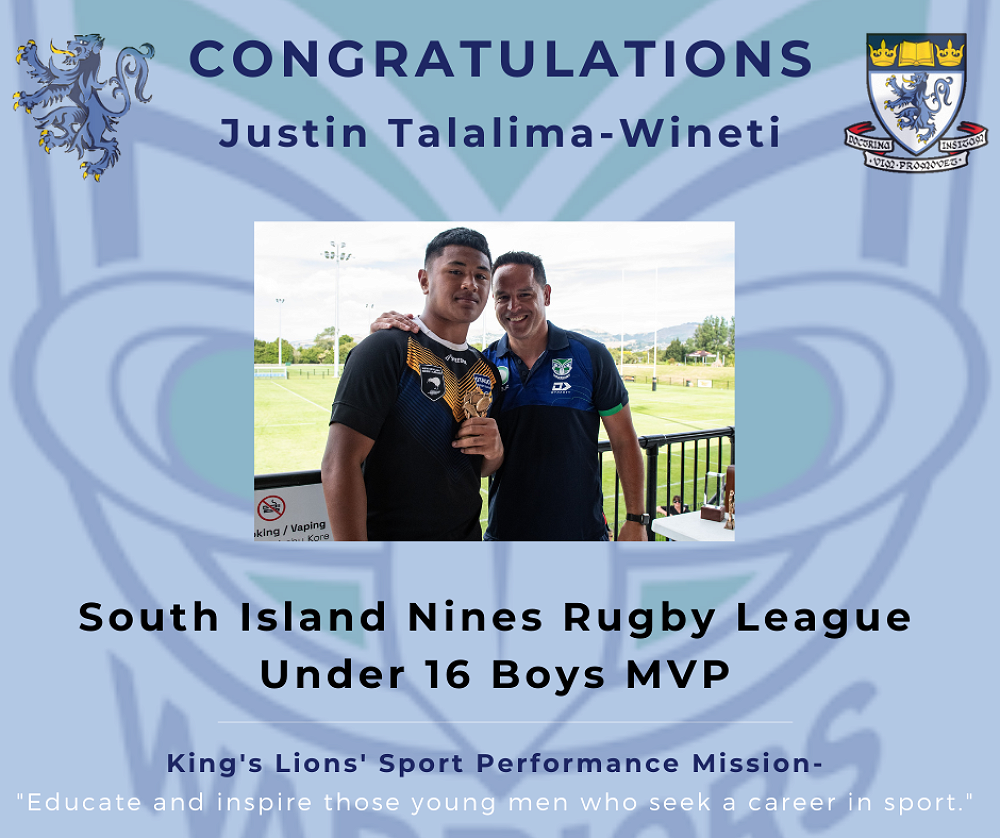 Also congratulations to Justin who was named MVP of the U16 Boys Grade in the South Island Nines Tournament!