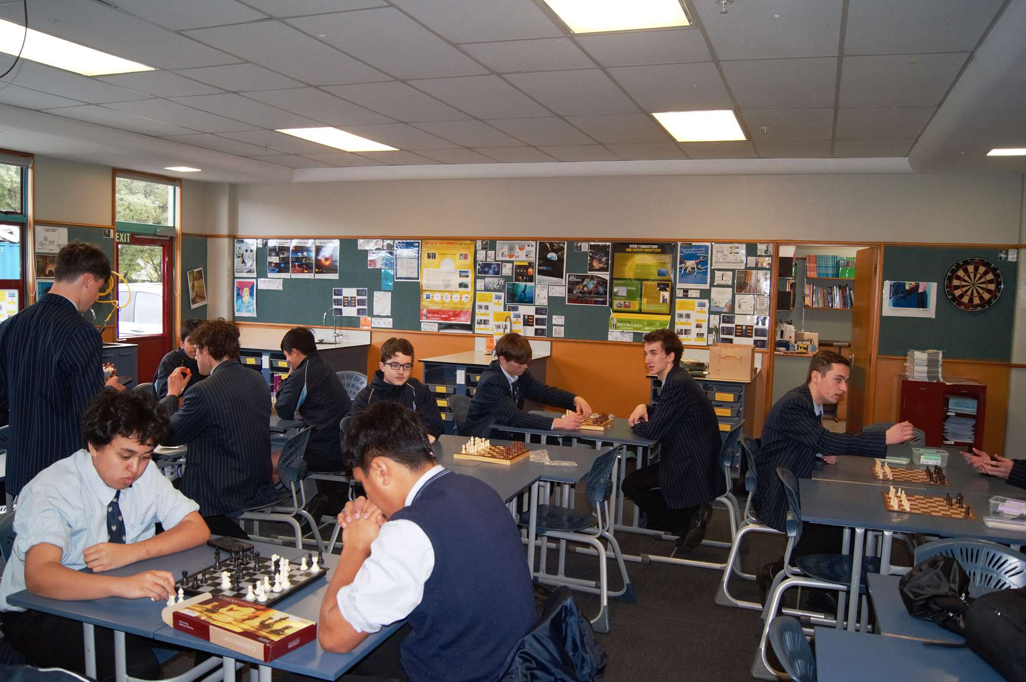At lunchtime students were spoilt for choice: the House Chess Competition playing off in B Block, the International student luncheon to farewell four students, and a visit from Queen's High School prefects to play Basketball with our prefects in the gym.