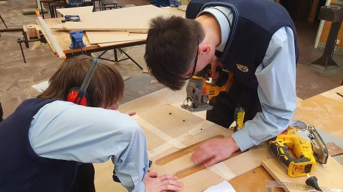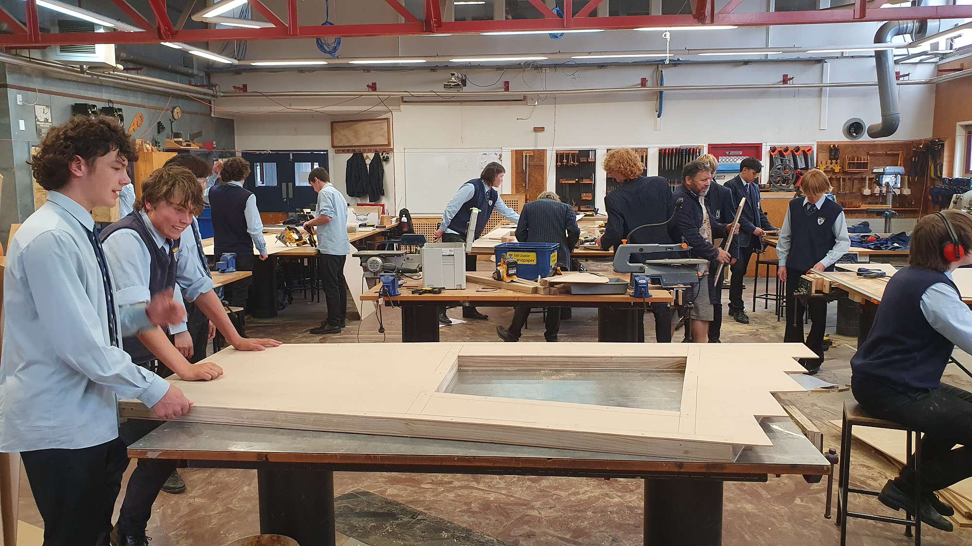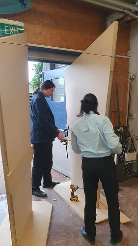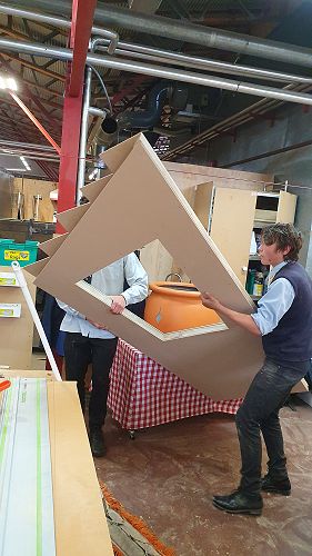 With a budget at hand, Richard sorted out the materials needed and then placed the call to students of his Senior Technology class to be a part of the construction team. Over the course of a day and a weekend, the props were measured and marked out, cut, shaped, joined and assembled to their final form.