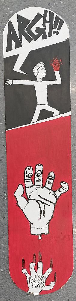 Max Groves, Year 10 Year 10 Art Blair Kennedy & Sarah Sharma — May 19th, 2022 Skateboard designs and reduction woodblock prints of the student's favourite icons. George Gamble, Year 10 Nikos Stamou, Year 10 Archie Hall, Year 10