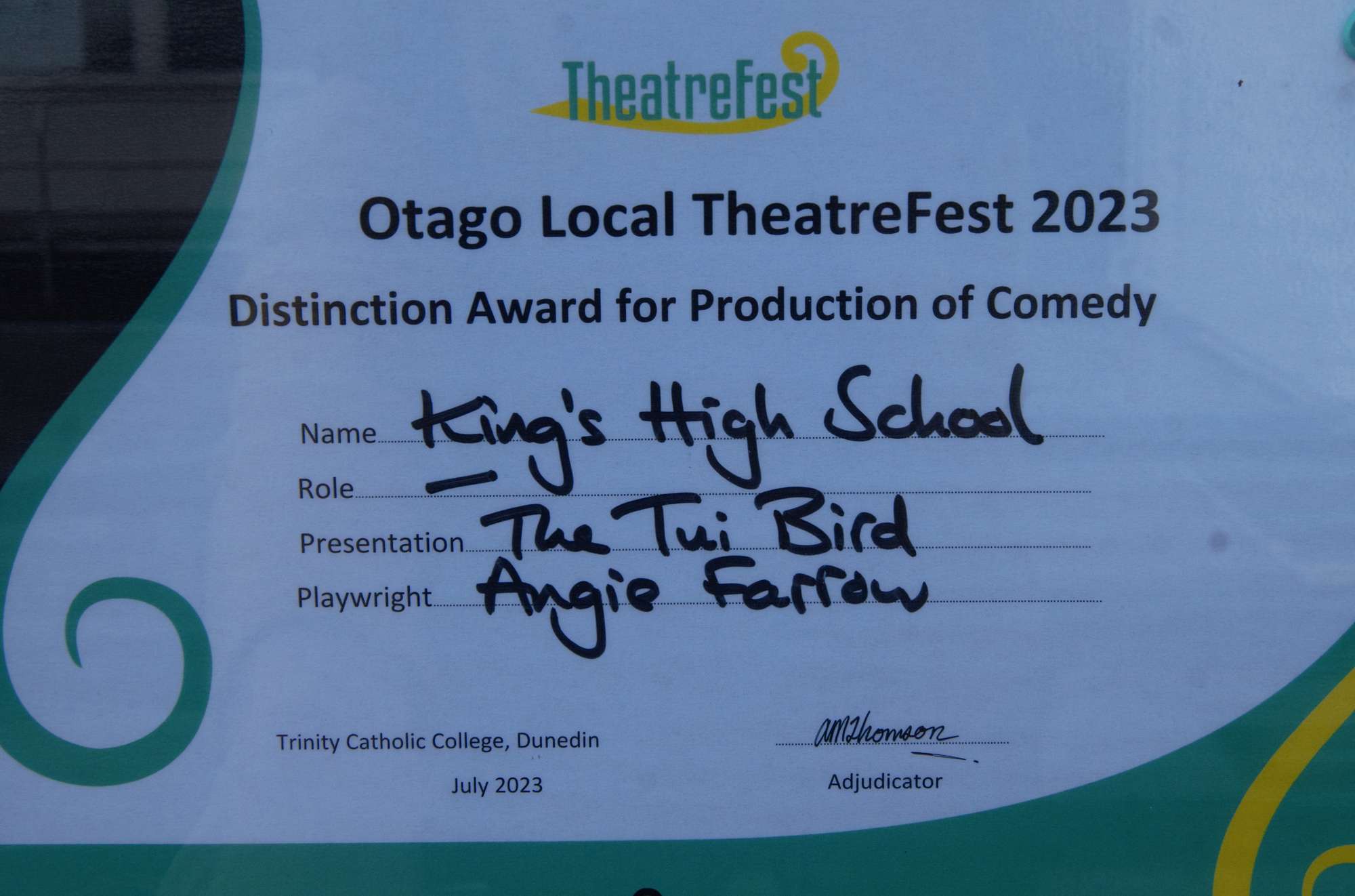 Distinction Award for Production of Comedy – King's High School, 'The Tui Bird.'