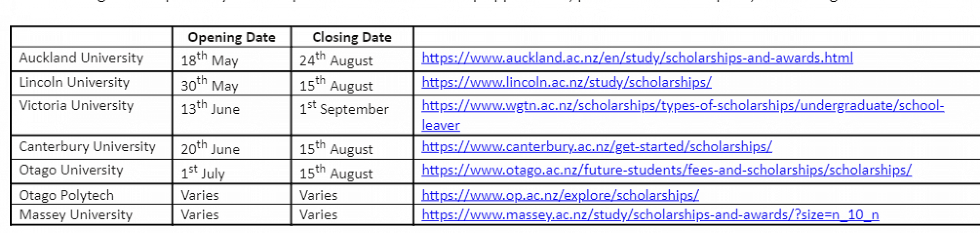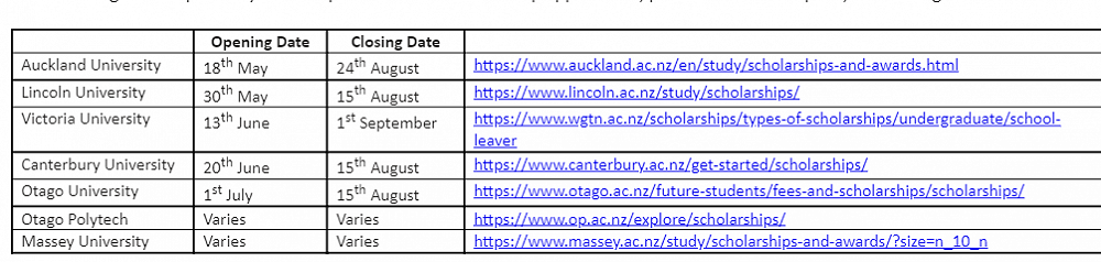 University-funded applications for Scholarships are beginning to open. Below are the opening and closing dates for Scholarships for key Institutes.