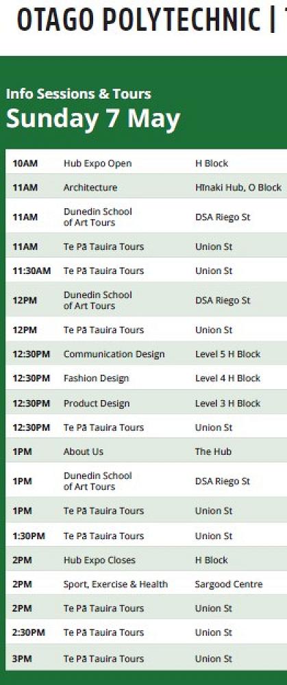 University of Otago and Otago Polytechnic are holding two open days. Sunday, May 7th is for anyone, of any age, interested in investigating future options. Monday, May 8th is set aside for Year 13 students.