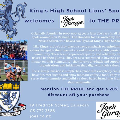 King's High School Lions' Sport Welcome Joe's Garage to THE PRIDE