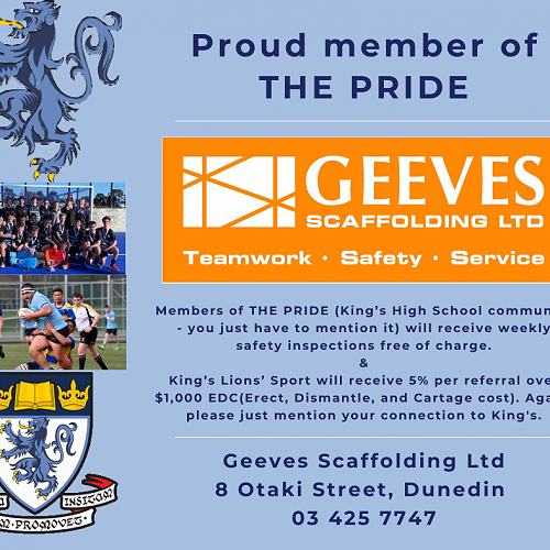 Visit this articleThank you Geeves Scaffolding for supporting King's Sport.