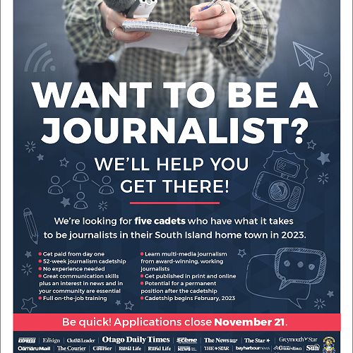Visit this articleAllied Press has an exciting opportunity for five people to join the 2023 intake of the Allied Press Journalism Cadet Programme – Te Waraki.