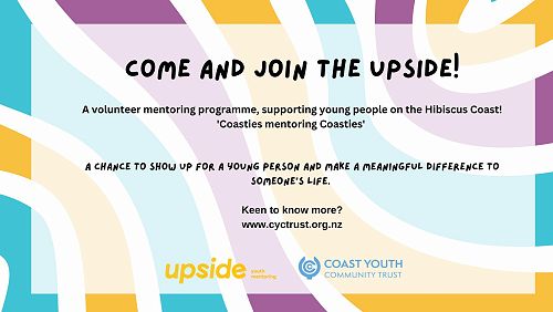 Upside Mentoring is a volunteer mentoring programme, where we match young people who live on the Hibiscus Coast who have been referred to us from social workers, counsellors, psychologists and police, with incredible adults from our community who have a heart to journey alongside a young person.