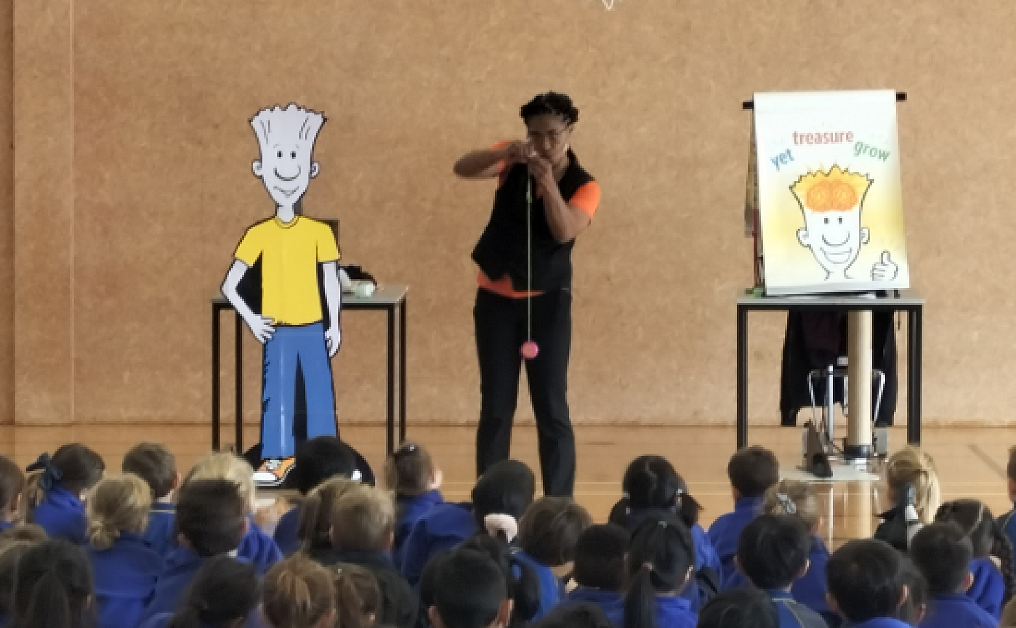This week was filled with much excitement and laughter as the students met NED and Shanika at the NED character education assembly program designed for primary school students. Shanika and NED came from the United States. The programme teaches important values such as; persistence “Never give up”, kindness “Encouraging others” and excellence “Do your best”: NED. The NED character uses storytelling, music, illusions, and interactive Yo-Yo tricks to take students on a journey to learn about perseverance and develop important life skills to never give up by embracing positive encouraging behaviours.