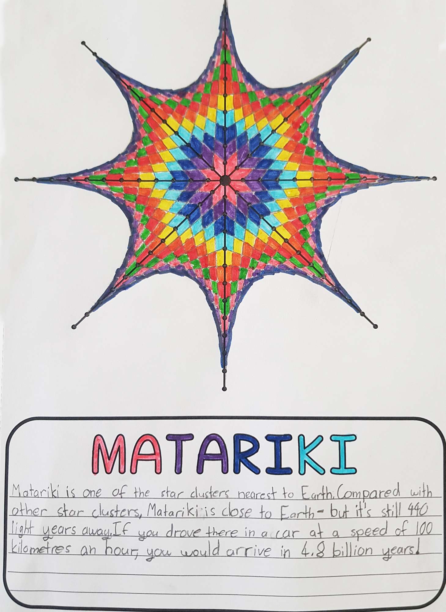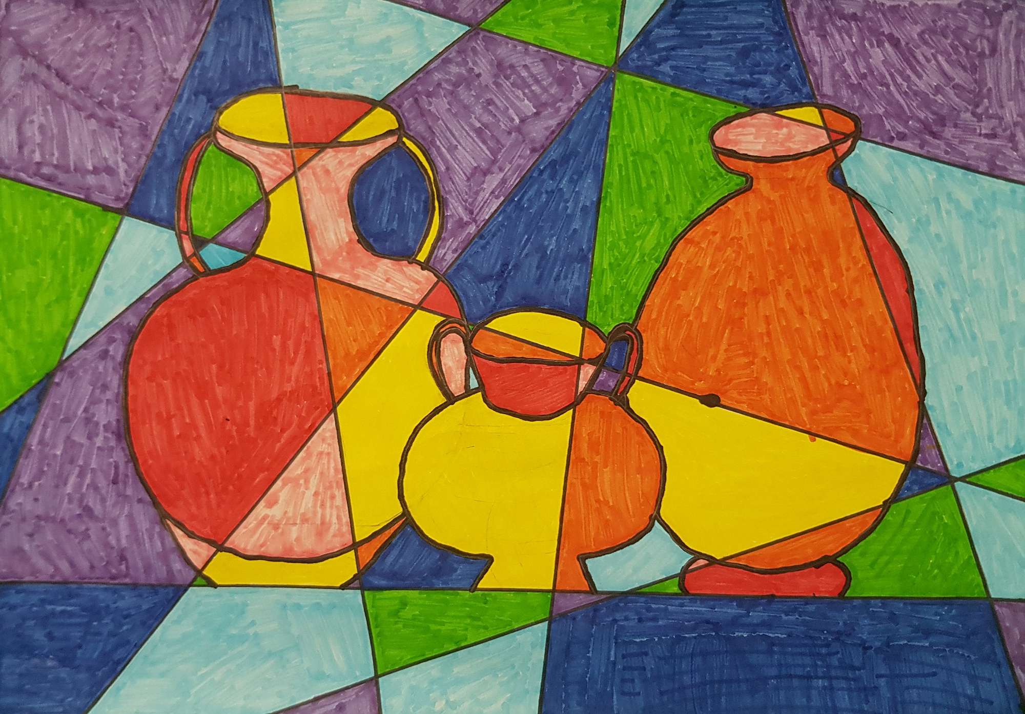 Integration of Geometry and Art has seen the Year 5 and 6 students create works that reflect the cubist art movement, and Matariki.