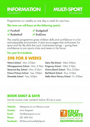 Advertising for extra activities for clubs, sports and other organisations are listed below: