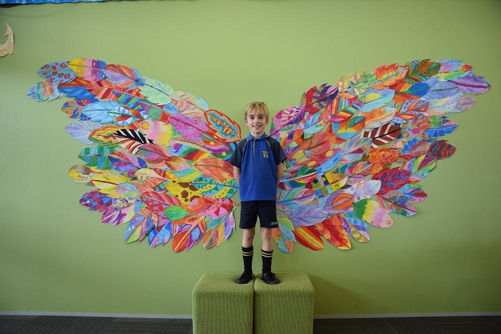 Once the students had finished their feathers, the teachers collated them to make two large wings. Our Maori Whakatauki for this term is; Ahakoa he iti, he pounamu (Although it is small, it is precious). The students were able to see through this collaborative task, that every small feather worked together to create a masterpiece.