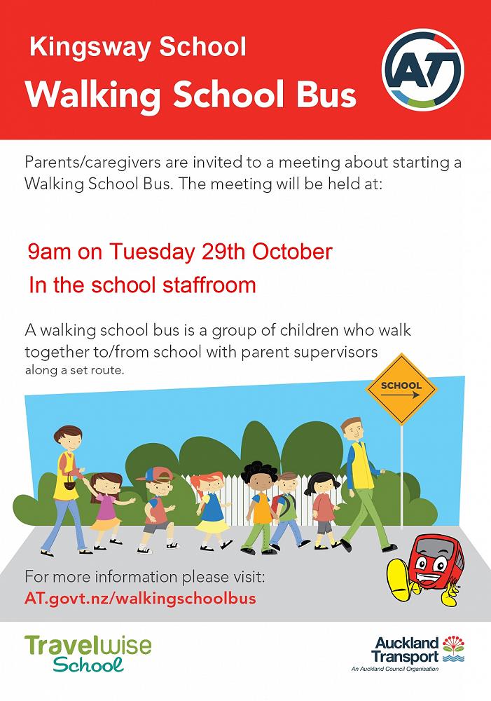 There will be a walking school bus meeting on Tuesday, 29 October at 9am. All are welcome to attend.