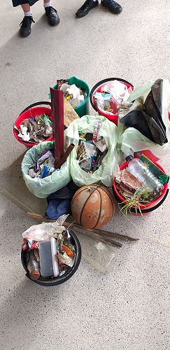 The Environmental Council teamed up with Year 12 students to run a school ground clean-up afternoon. Students collected five buckets of rubbish, mainly consisting of lunch box debris. An old tennis ball was found hosting a spider plant; life finds a way!