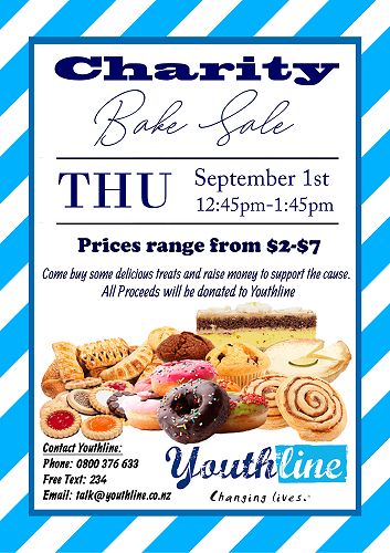 - Mental Health needs/care in Youth: A Bake Sale to raise funds for “Youthline”
