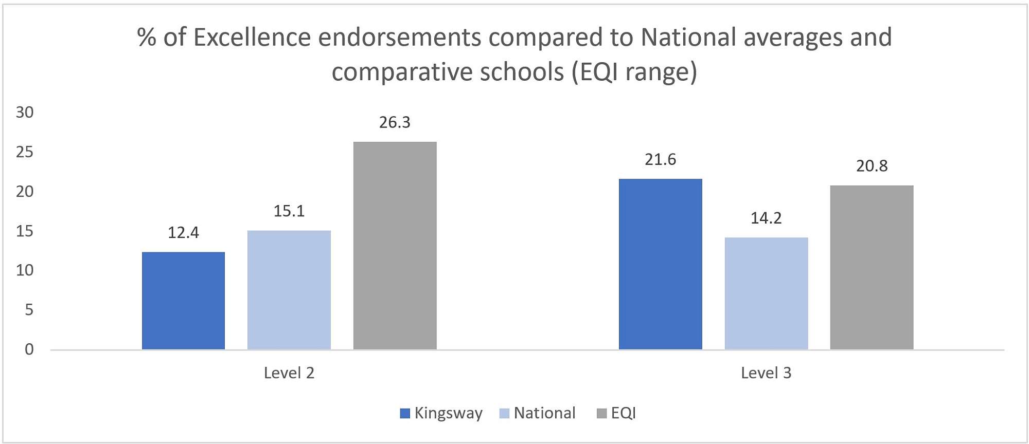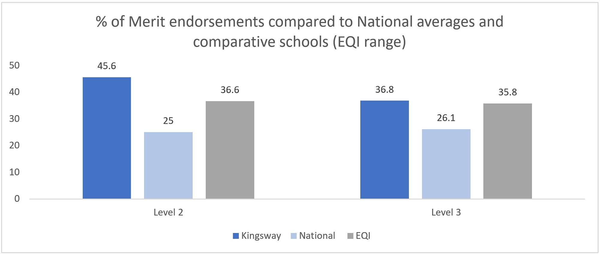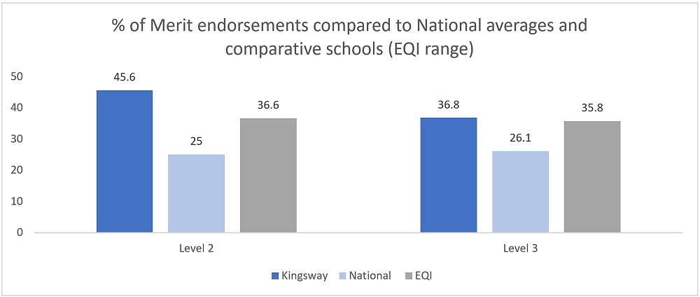 Level 3 Merit & Excellence endorsements remain above National and comparative schools' averages. However, a decrease in Excellence endorsements was seen at Level 2.