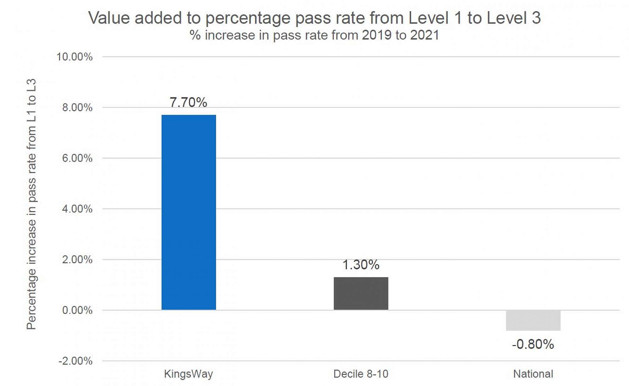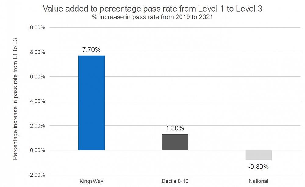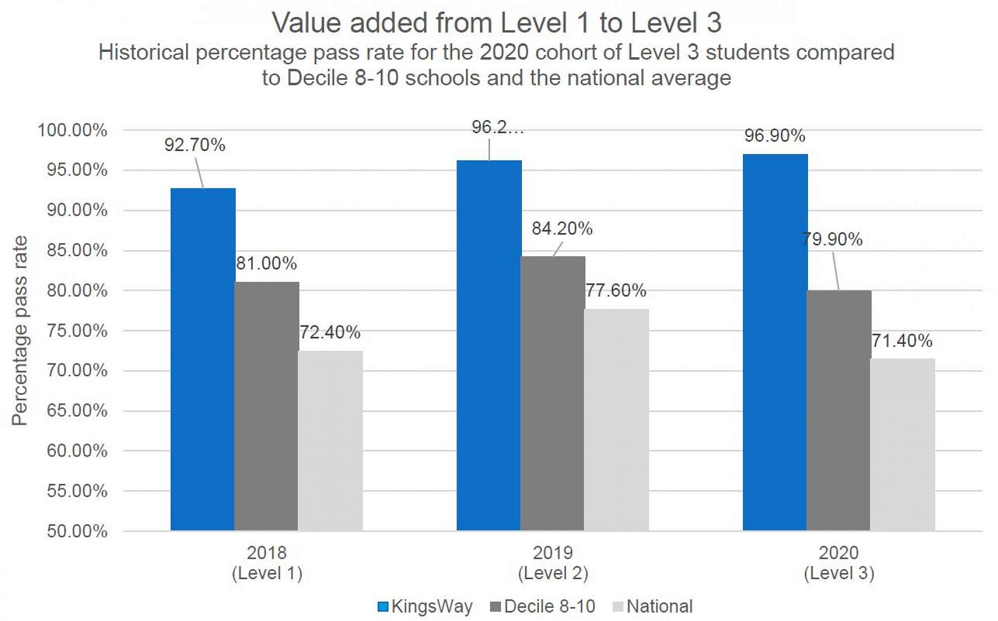 KingsWay has added more value to our students over the last three years than Decile 8-10 schools and the national average despite having a higher starting point in Level 1.