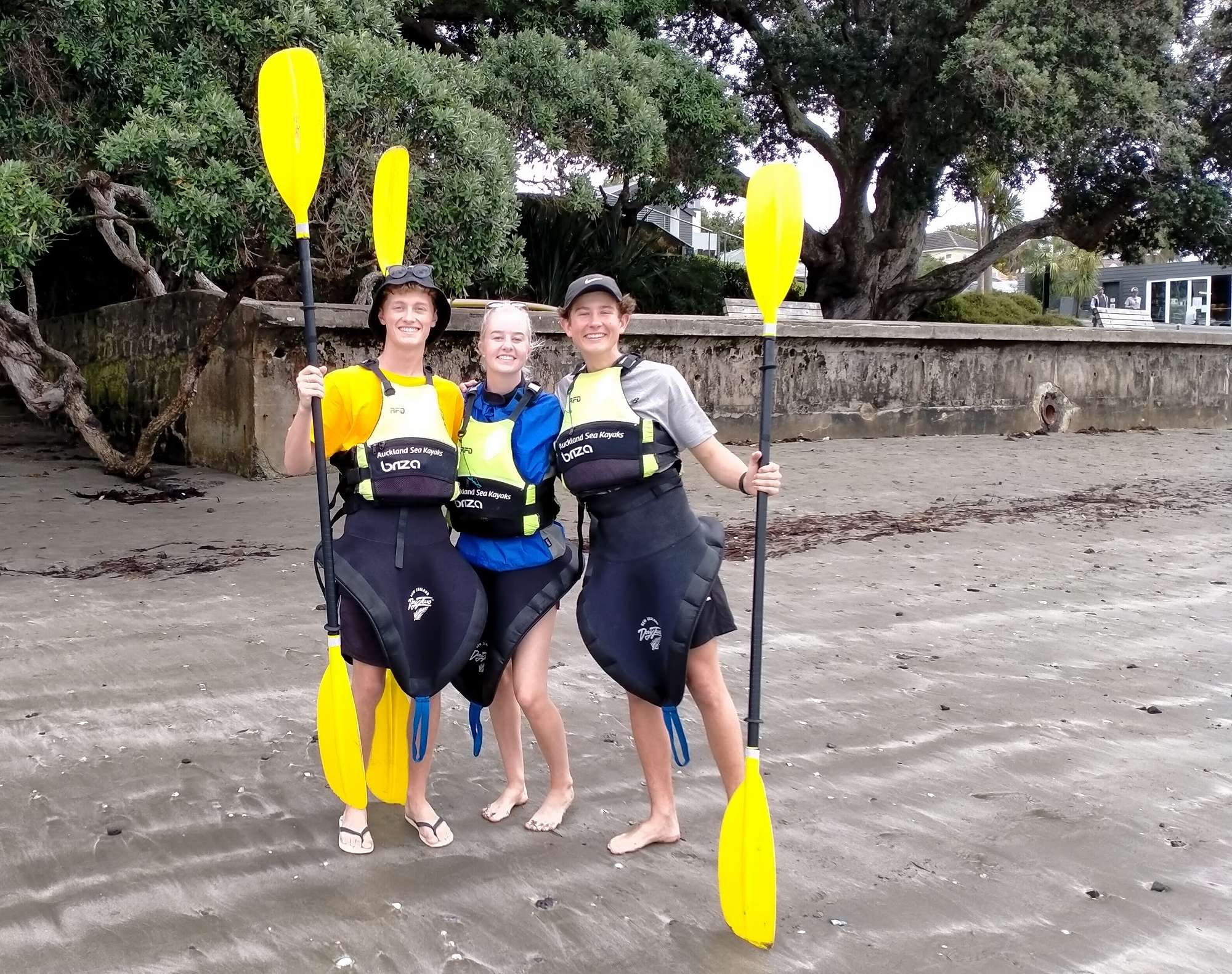 The Level 3 ABL class recently completed an epic adventure, paddling by sea kayak from Takapuna Beach to Rangitoto Island in rainy conditions before racing to the summit for an amazing view of the city. Students in this course have been exploring a variety of approaches to leadership and how to lead others effectively in outdoor adventure activities, including rock climbing and kayaking.