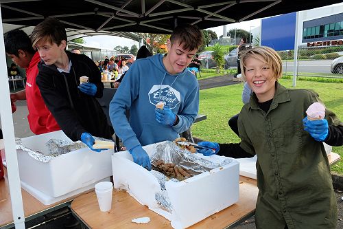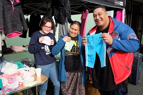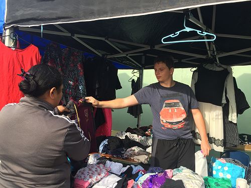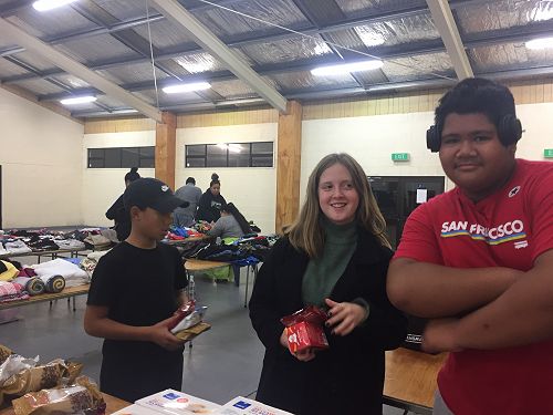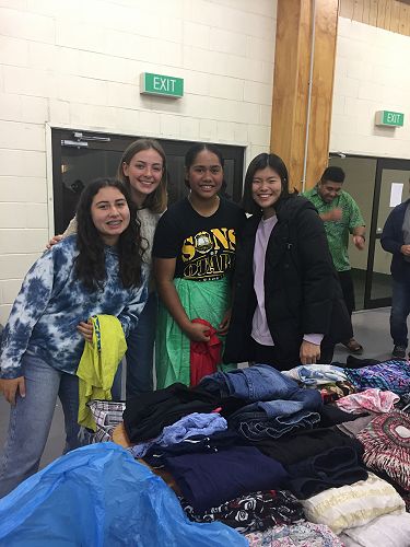 Saturday was an early start with a 6am prayer meeting and worship service and the students helped prepare the venue for the Sunday service. Our KingsWay students served so graciously by washing windows, arranging furniture and cleaning bathrooms. After a hearty breakfast, everyone set up for the Community Day. The East Tamaki community were invited to a sausage sizzle, face painting and were able to take whatever they needed from the donated clothing items. As well as this, each family was blessed with a large food parcel to take home. The scarves that were knitted by some of the KingsWay staff and families were distributed too.