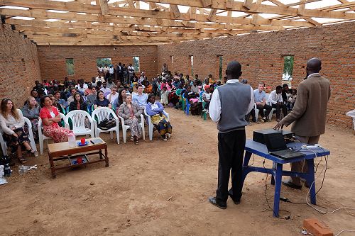 Building the community church in Dedza. We were blessed to work with the congregation assisting them in building the new church. Students and adults were involved in carrying out activities of a physical nature such as pushing wheel barrows, digging, raking and carrying water from the well to the site. It was such a joy to have our first worship service in the almost completed church.