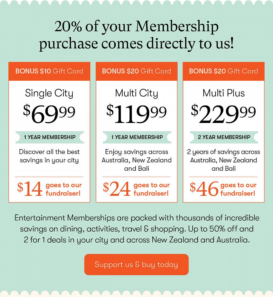 Entertainment Digital Memberships are convenient, easy to use, and packed full of valuable 2 for 1 and up to 50% off offers for you to use over 12 months from activation. With every membership purchased, KingsWay School Missions receives 20%.
