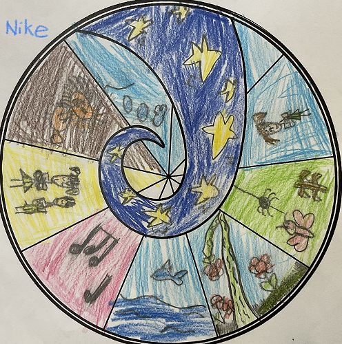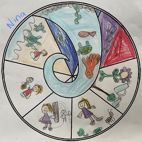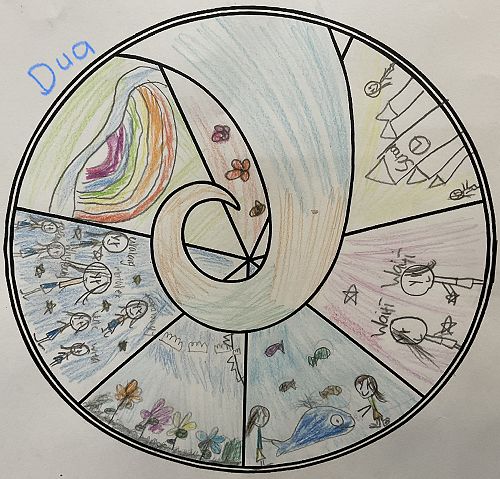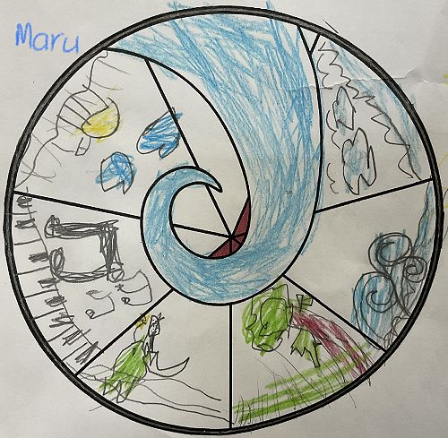 Their designs needed to represent some of the Matariki Stars. Tupuanuku - looking after plants, Tupuarangi - waiata, Waipunarangi - oceans / lakes / rivers, Waitiī and Waitā - work together to look after small creatures, Ururangi - having a good attitude and Matariki - looking after children.