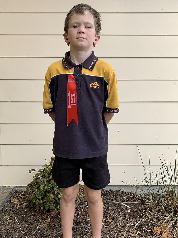 Phaegan, a Year 3 student from Bluestone School in Timaru, came first in the cross country race for his age group. Phaegan was pleased with this result. He also encouraged others to keep running, showing good sportsmanship. Phaegan's class had been practising during the term, so he was ready on the day. Mum was there to cheer him on.
