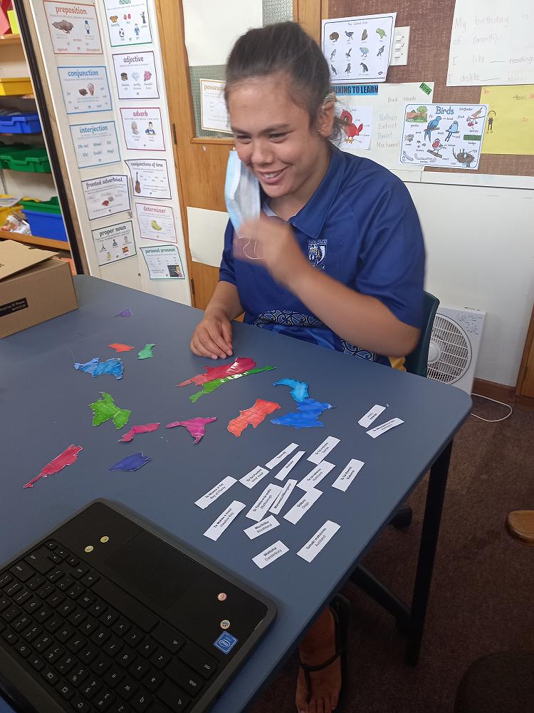 Ariana is shown here, reconstructing the map of New Zealand and labelling the names in Te Reo. Ariana proudly presented her Queen Elizabeth project to her peers, containing facts about the Queen and the royal family, in term 3.