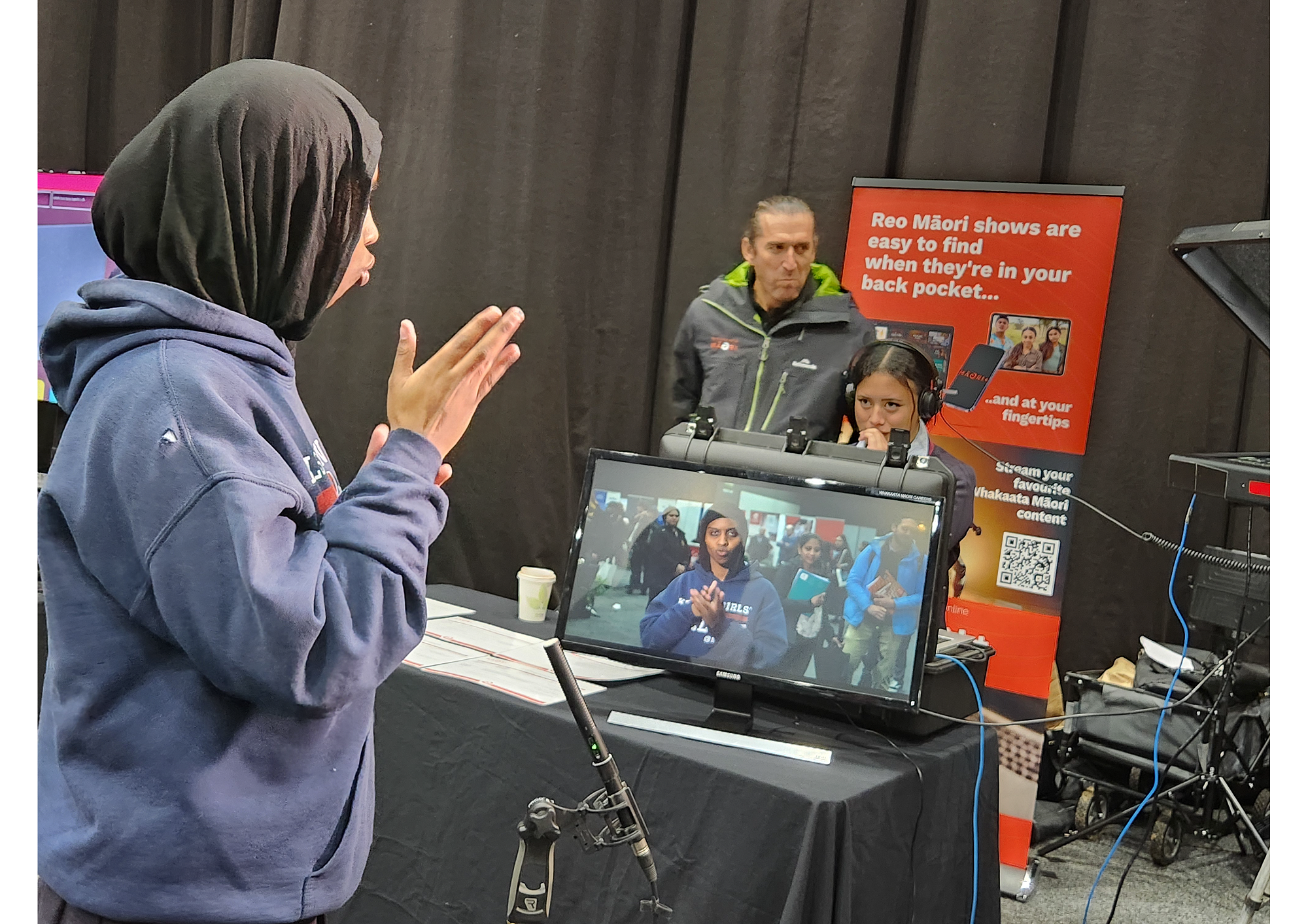 Sumeya, one of our Year 13 students, explored various opportunities at the expo. She was asked to participate in reporting news for one of the agencies as part of a career pathway option after high school. She gladly did the reporting in New Zealand Sign Language with great confidence.