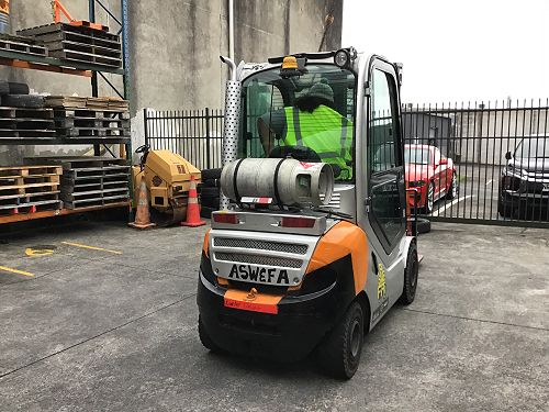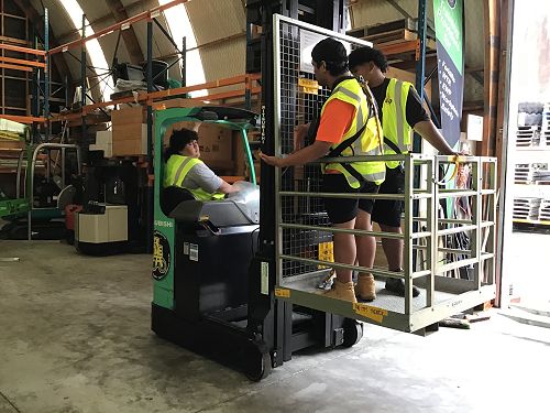 We learnt how to put on a harness, lift people in a cage, walk safely behind forklifts, counterbalance and what this means for a forklift and pallet trucks. We had a lot of theory and practical tests on three different forklifts.