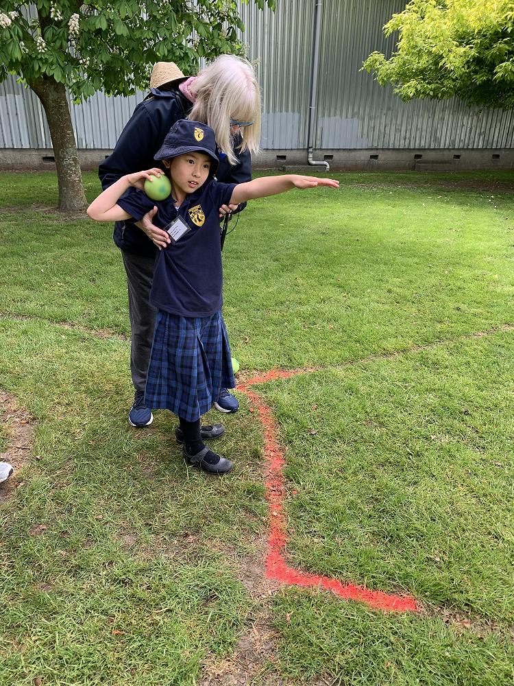 Claire Wang, Year 3 student at Hampstead school in Ashburton, shows us how to successfully throw a shot put and jump over the high jump at their recent Athletics day.