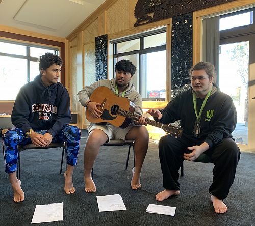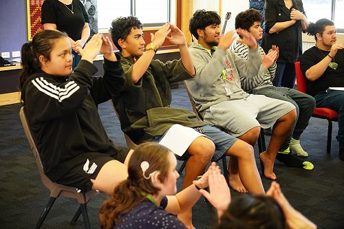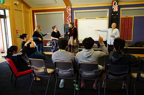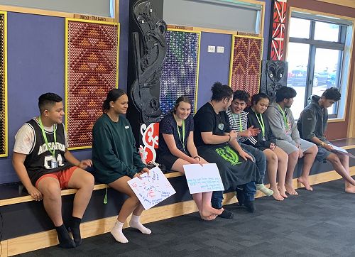 On arrival at Ko Taku Reo in Kelston Auckland, these students congregated at the Rūaumoko Marae and were welcomed by way of a powhiri, which saw the entire Kelston provisions turn out to welcome the participants. From day one, the ākonga, most of whom had never met before, really gelled as a group, and by the second day, they had written their own class treaty, to guide them and set the standard of expectation for their week's journey ahead.