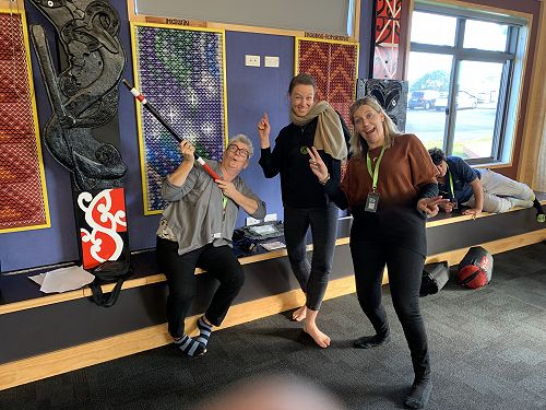 The Hui ended with an amazing presentation from each student of their Pepeha in NZSL and Te Reo Māori, and feedback on other aspects of their learning over the week, in front of invited staff, who were deeply moved by their stories of transformation and belonging. However, in upholding the Marae protocols these could not be videoed from inside Rūaumoko. There was, however, footage taken of them earlier, practising their Pepeha outside the Marae, which I can now share with you all.