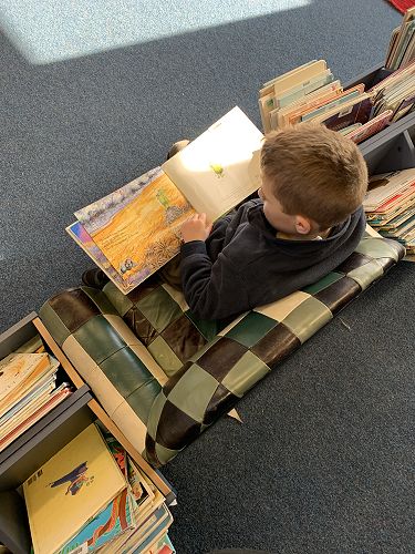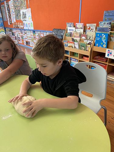 In addition to all these visitors, we've been learning about all sorts of things as you can see in the photos. We're working on our maths by making 3D shapes, ordering items by weight, and playing board games. To develop our literacy skills, you can see us reading a shared book, choosing library books, and following a recipe in a book to make bread. We joined Linden School to plant flowers and add our sounds to an orchestra performance.