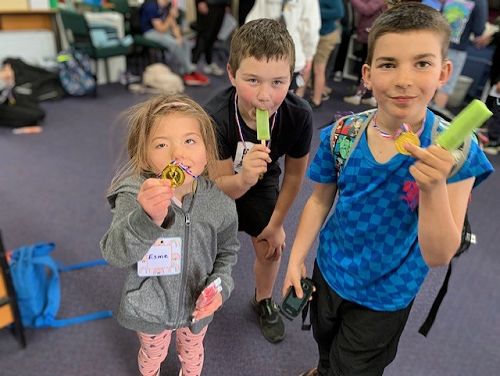Many of our students met Alena Saili, Olympic Gold Medalist in their schools. Alana let students hold her two gold medals, which were heavier than expected. The students rotated around five activities, including archery tag, golf, indoor soccer, indoor basketball and Boccia. Active Southland hosted it, and each student returned with a gold medal.