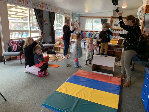 Sessions always include opportunities for child-led play experiences and signed music. Story-times focusing on Theory of Mind concepts with thinking and feeling language and lots of repetitive language enriched our Playgroup sessions and allow tamariki to show us their language learning and ideas.