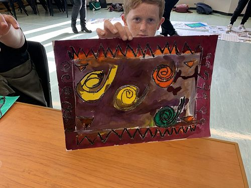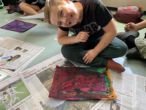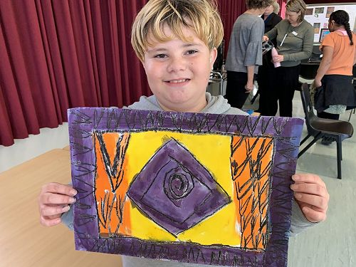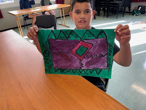 Our students came together for a fun art day. The focus/big idea was‘My Story through Traditional Maori Symbols'. The children learned the names and meanings of eight different traditional Maori symbols and then choose some to tell/draw their story on an A3 piece of paper. Using pastel and dyes, their drawing was completed and shared with a small group.