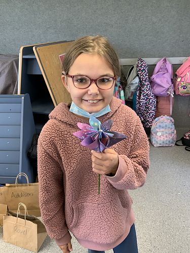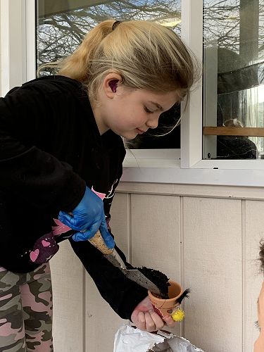The students began the day by rotating around three activities – making paper flowers, decorating and potting a pot plant and making bracelets.