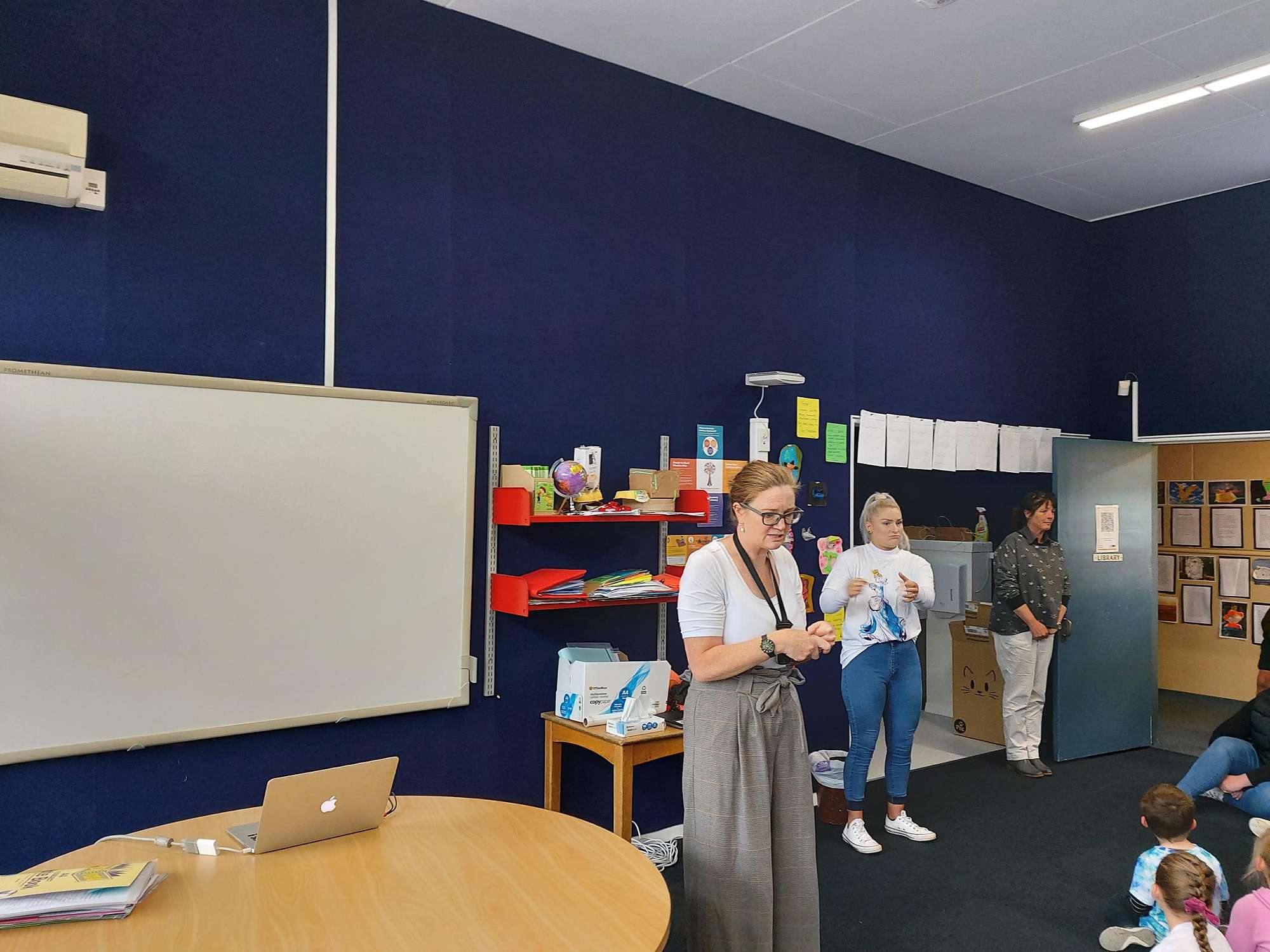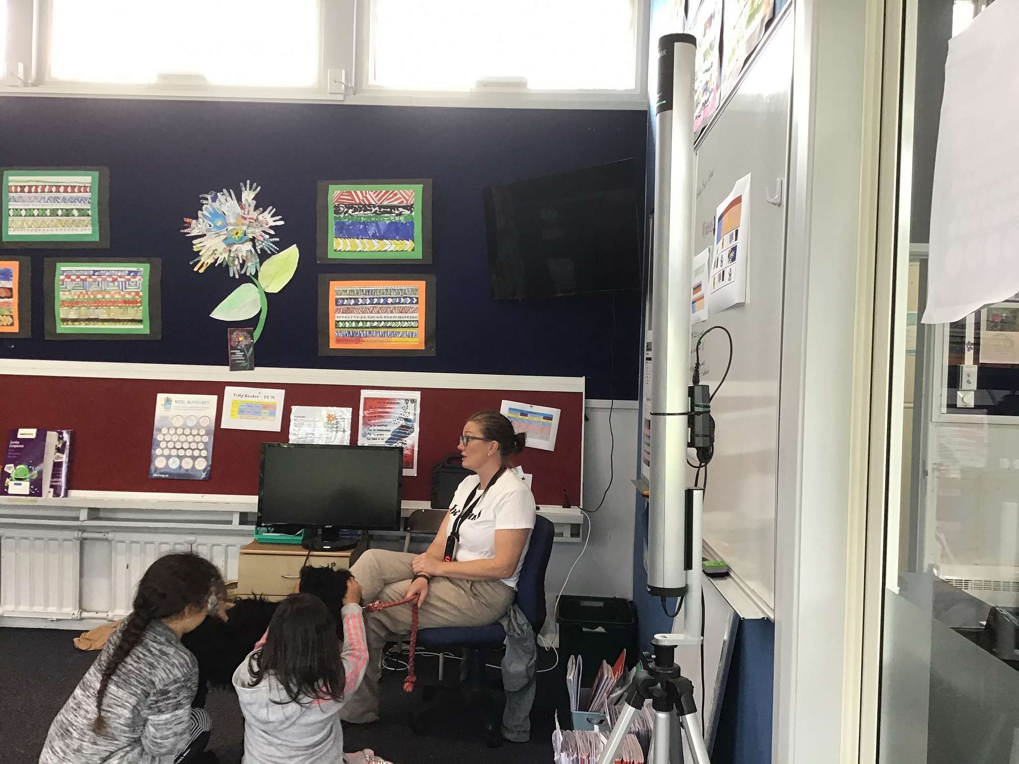 Janelle talks to school using Roger Technology with Poppy Interpreting