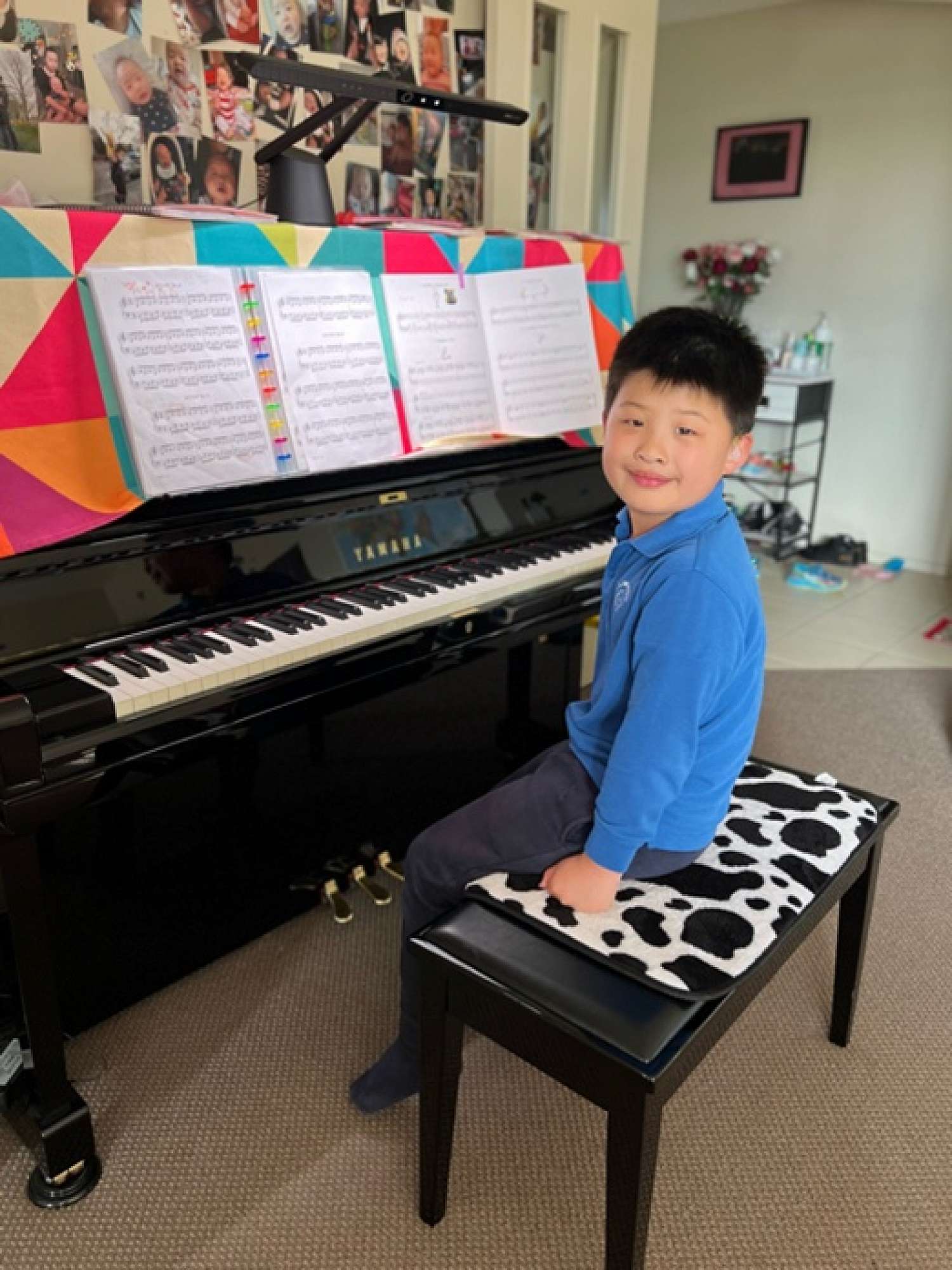 Daniel Lin, has studied piano for three years, from the simplest notes to now when he is able to play beautiful music. He made a lot of effort and was very determined sometimes ending in tears, said his mum Coco Cao.