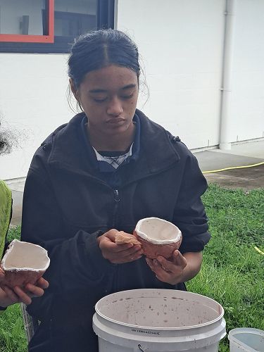Amelia, Limara, Ella-May, Vincent and Malacai attended two Regional Hui at Rūaumoko Marae. Day one started with officially welcoming the students onto the Marae with a powhiri, followed by kai. Following this were two group activities: clay making and a waiata. On day two, students learnt more about Rūaumoko Marae before peeling vegetables for shared soup. They completed two group activities, glazing their clay work and making te rākau.