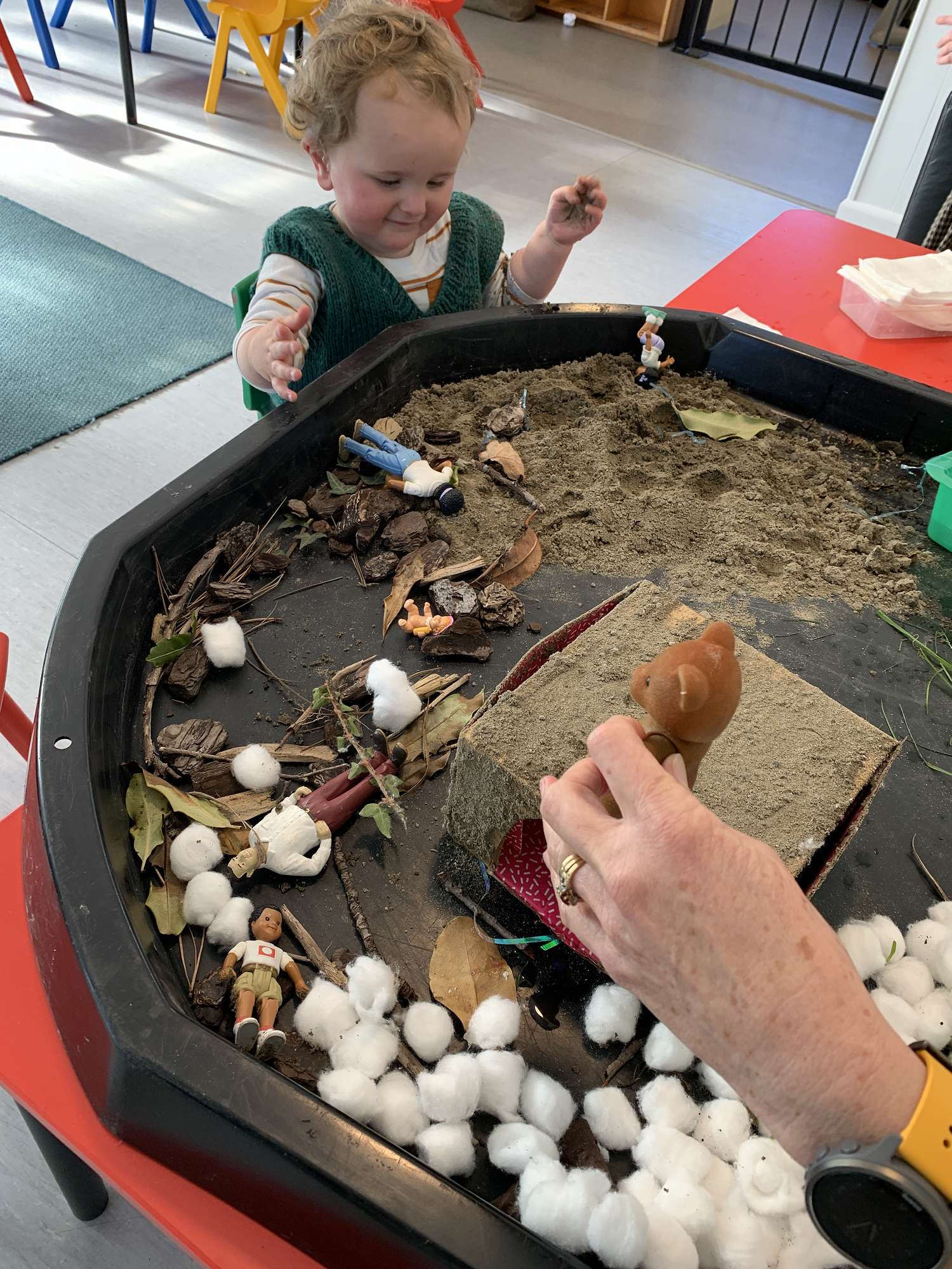 We loved going on a Bear Hunt through the long, wavy grass and sticky, eeky mud. At Sumner, we went on a chocolate hunt and found a big block of chocolate hiding in the tree. We chose to share it with our friends. As always, child-led activities ensure choice and peer engagement in everything the tamariki do.