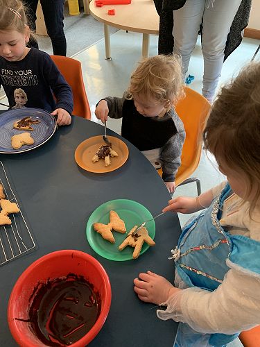 This term we celebrated NZSL Week by involving the children in making very special biscuits.We completed the whole process from rolling the dough, selecting the shapes we wanted (either a butterfly or an "I love you" cutter), to baking, decorating and eating them.The make and do activity allowed each child to participate in as much of it that they wanted to, and certainly, most children wanted to eat them at the end! We added the photos to Storypark so that the children had the opportunity to tell other family members what they had done that day.