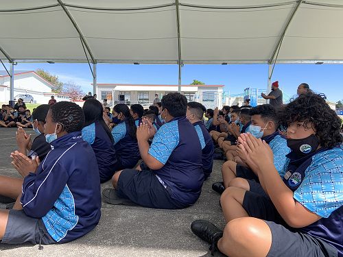 One last great thing is that Kelston Intermediate has a new canopy shade area where we can have assemblies during Covid Red light setting! We can all sit outside in the shade, join in with Waiata and play some team sports games!