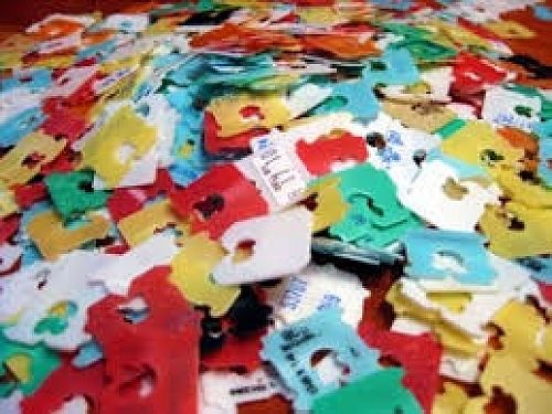 Bread tags come in many shapes, sizes and colors. Made of High Impact Polystyrene they have a good recycling value. It takes 200 bread bags full of tags that are packed into 10 black bags or 200 kg of tags to bring in enough money to buy one wheelchair.
